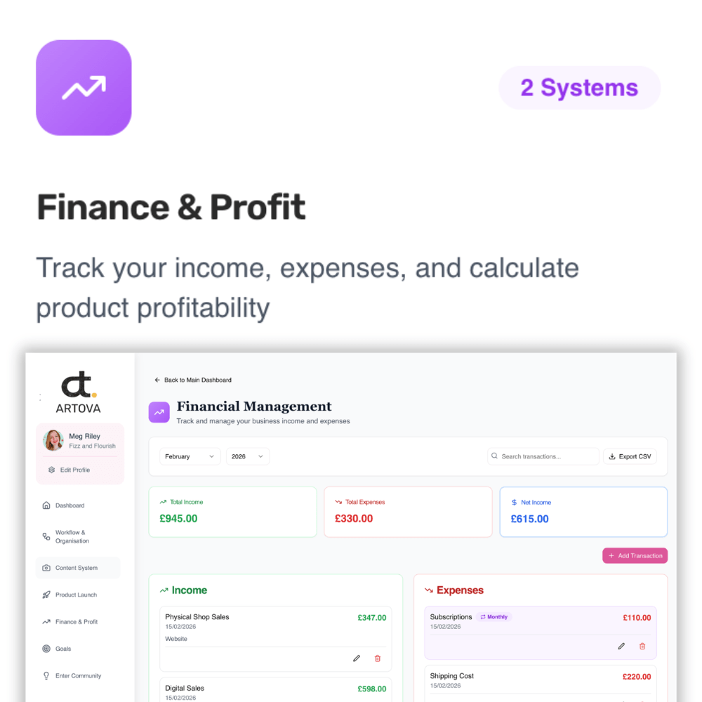 Easy-to-use finance trackers to help you stay on top of your income, expenses and profit.