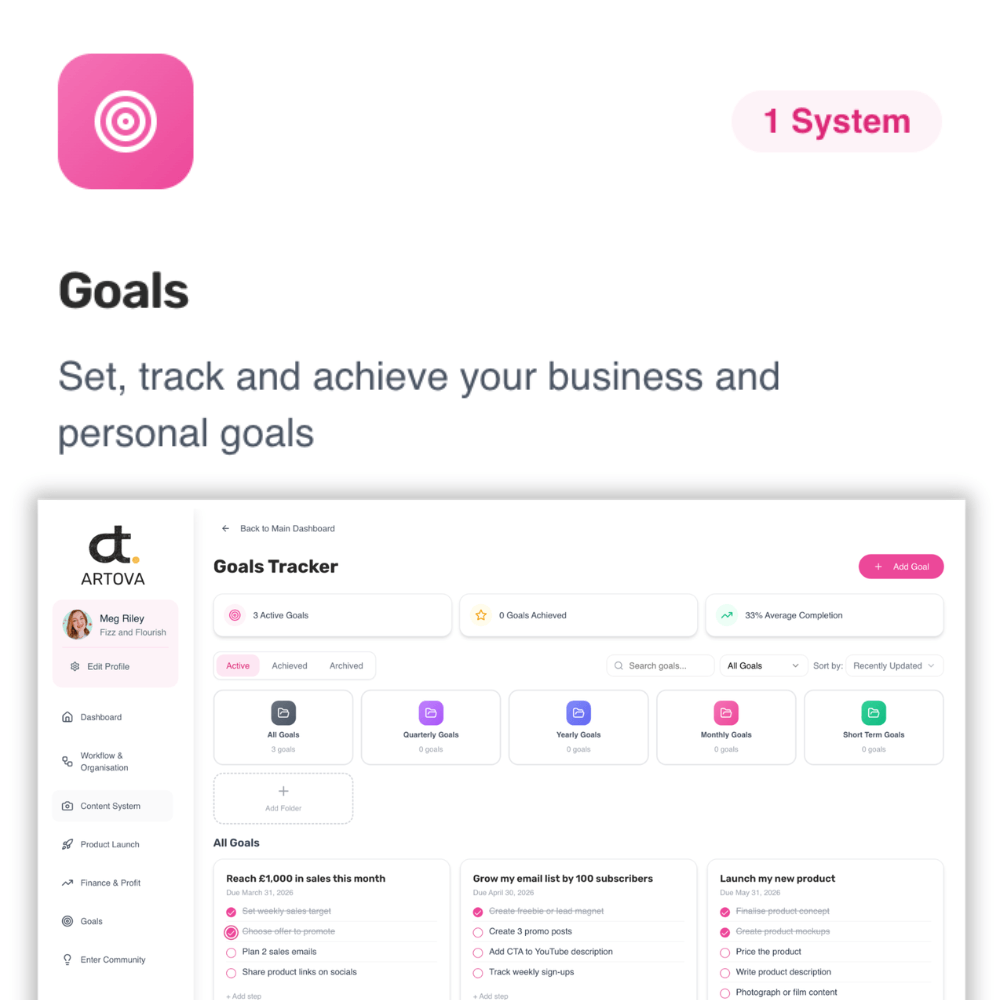 Add your idea to the brain dump. Ready to execute? Simply convert it into a task to be checked off when done. Keep track of your goals and celebrate when you achieve one.