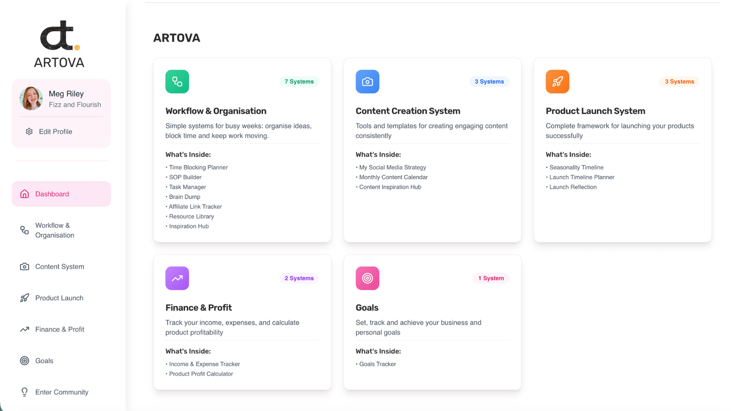 A clean dashboard with dedicated space for launches, marketing, tasks and more.