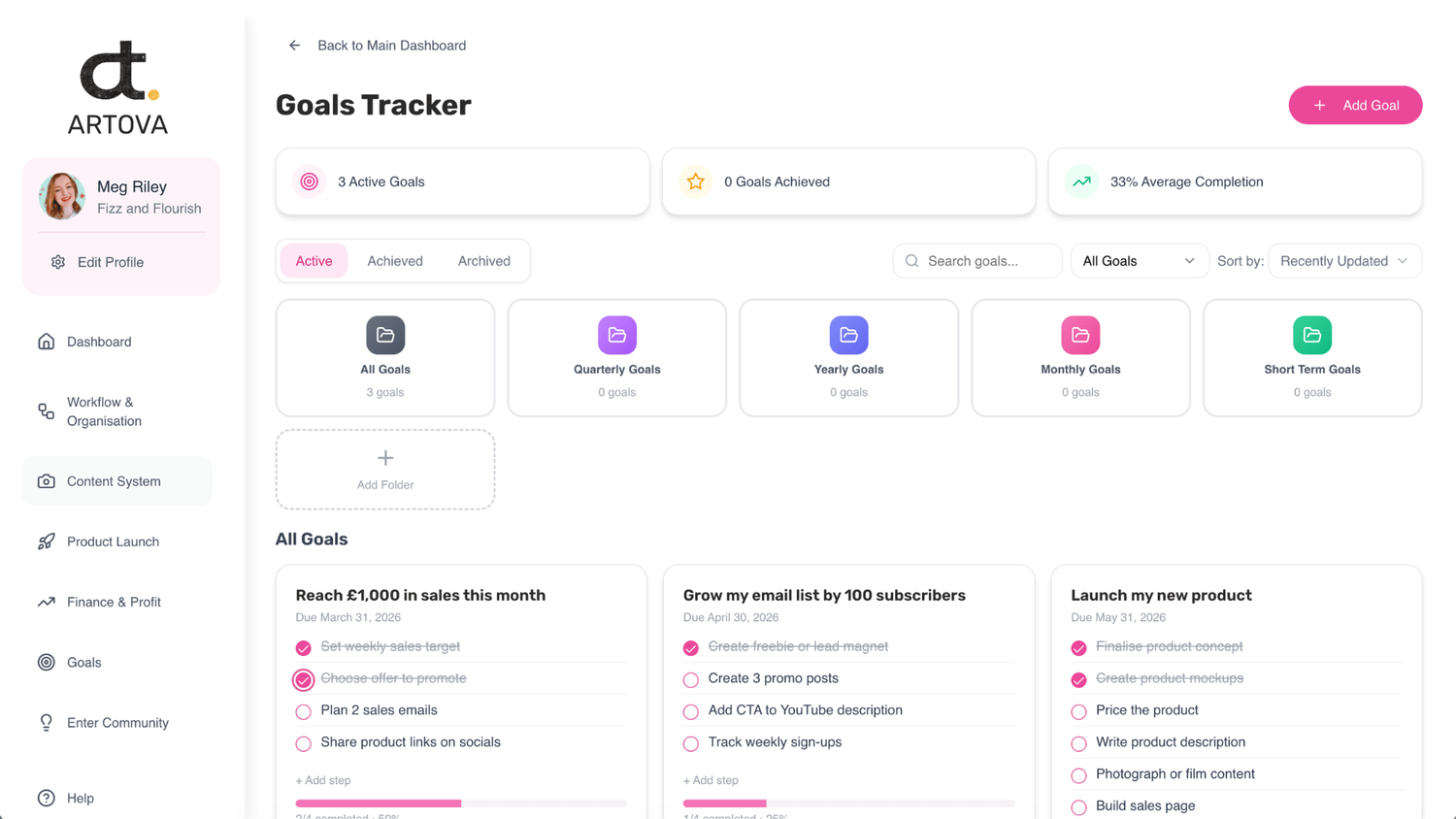 Set meaningful goals for your business, then break them down into smaller action steps so they feel easier to follow through on - not just good intentions sitting on a list.