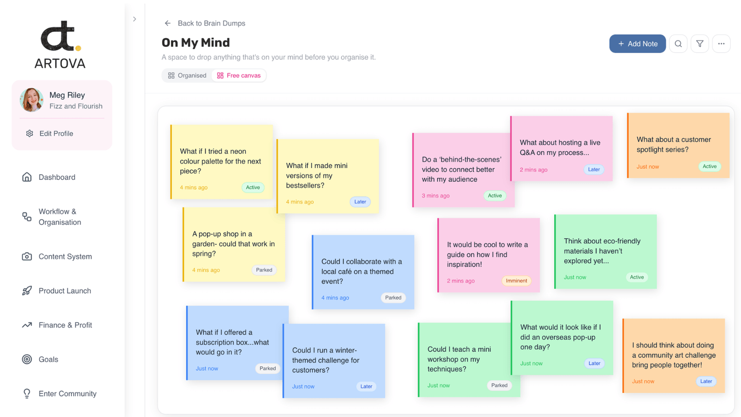 ARTOVA is designed around how creative entrepreneurs actually work - visually, flexibly, and in connected systems that turn ideas into action.